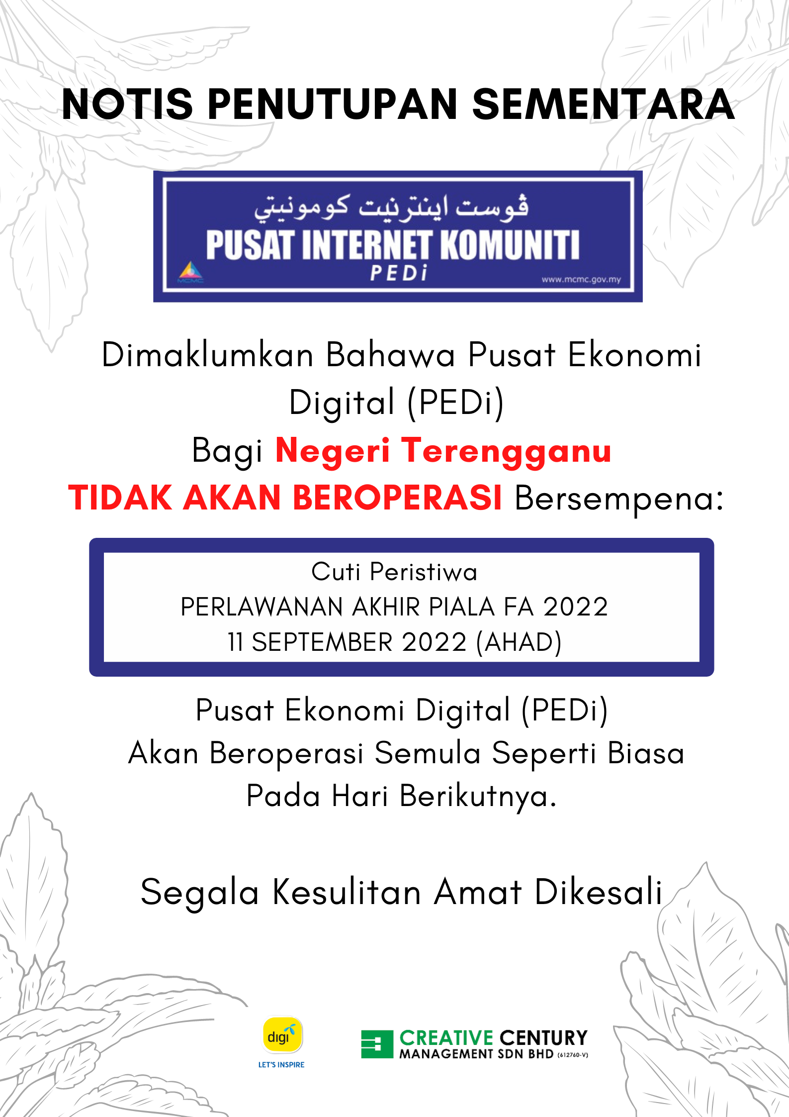 NOTIS PENUTUPAN PEDi TERENGGANU SEMPENA CUTI PERISTIWA